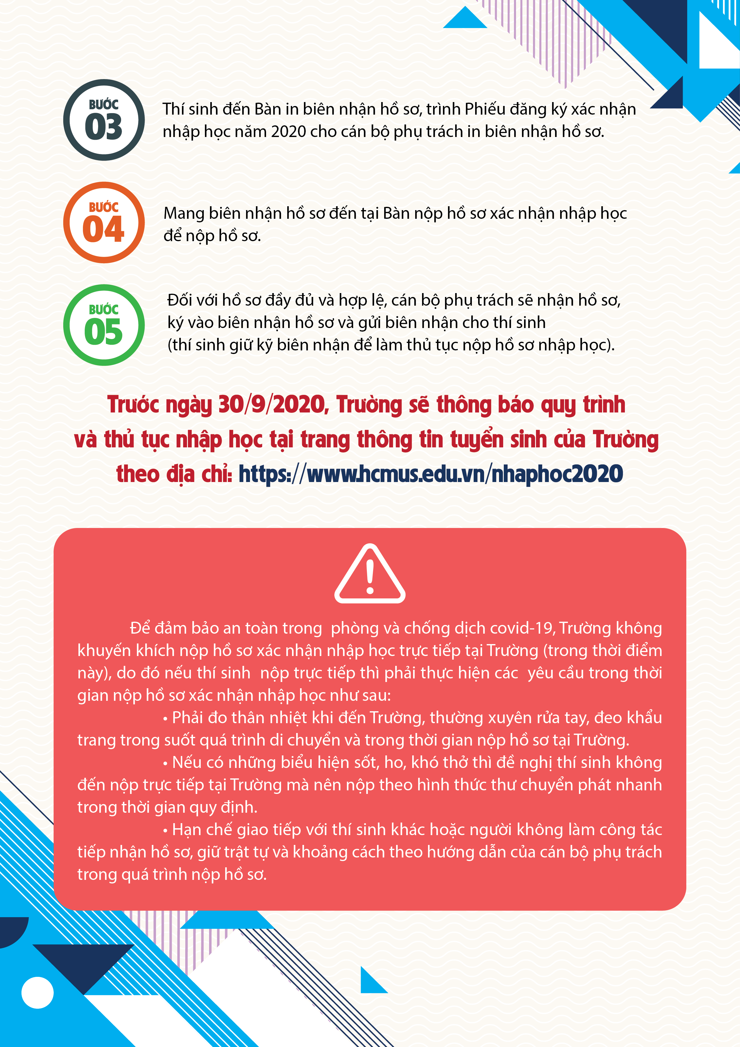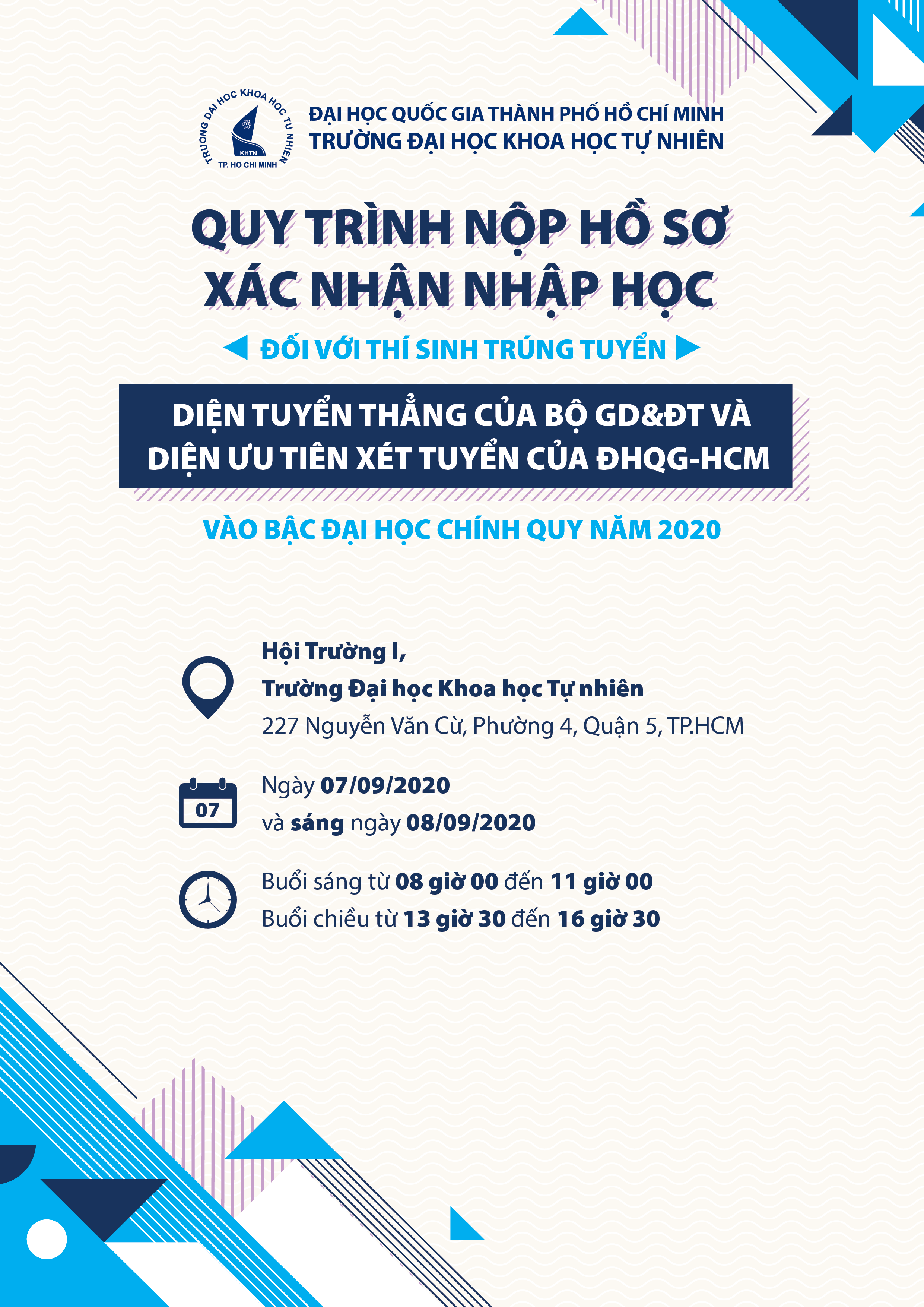 Quy trình nộp hồ sơ xác nhận nhập học đối với thí sinh trúng tuyển diện Tuyển Thẳng của BỘ GD&ĐT và diện Ưu Tiên Xét Tuyển của ĐHQG-HCM vào bậc đại học chính quy năm 2020