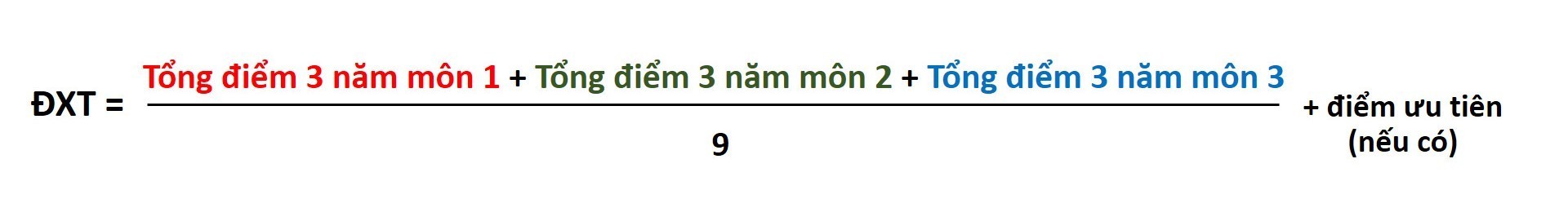 - Điểm xét tuyển là điểm trung bình cộng học lực 3 năm học lớp 10, 11 và 12 của các thí sinh.