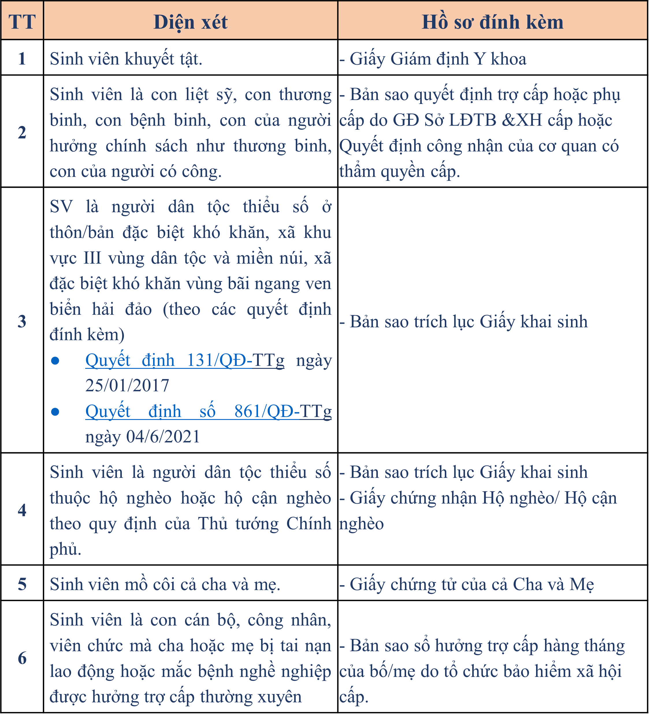 - Sinh viên có hoàn cảnh khó khăn khác.